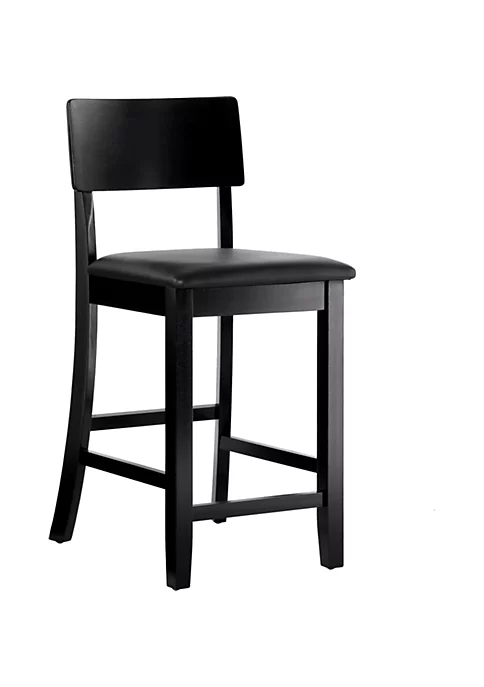 - Black finish | Dark brown pvc vinyl seat cover | Seat dimensions 24in seat height 17.24in x 16.85in x 1.77in | Stationary seat | Sturdy hardwood construction