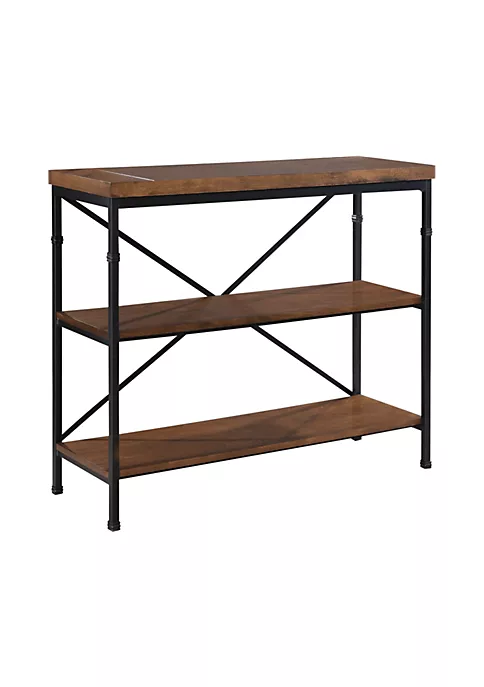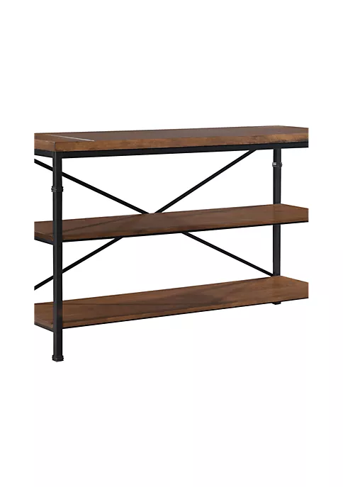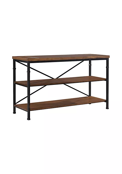 • Rustic industrial design with black metal and ash veneer finished in a warm walnut stain