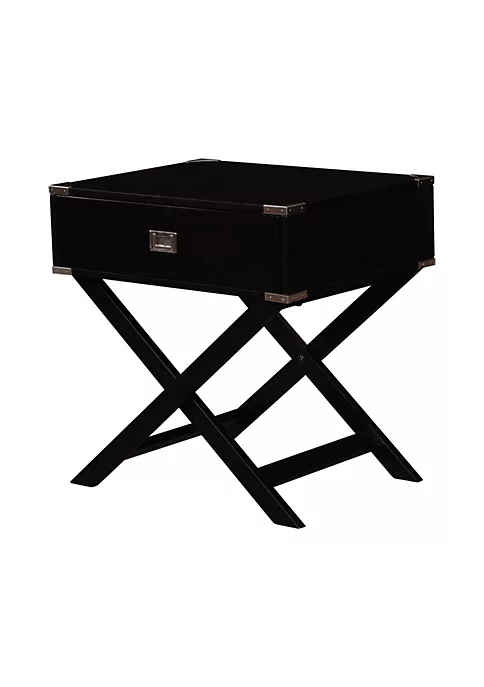 - Fun X Designed Base | Single Drawer Provides Ample Storage Space | Metal Accents On Each Corner Add A Fun Detail To The Piece.