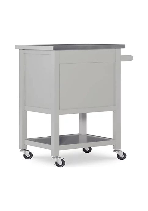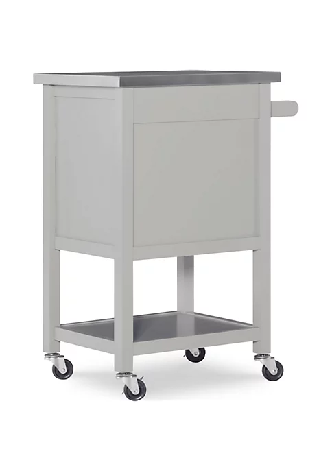β’ Simple durable design with a gray finish with stainless steel metal handles and hardware