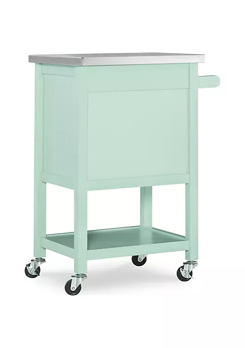 β’ Simple durable design with a mint green finish with stainless steel metal handles and hardware